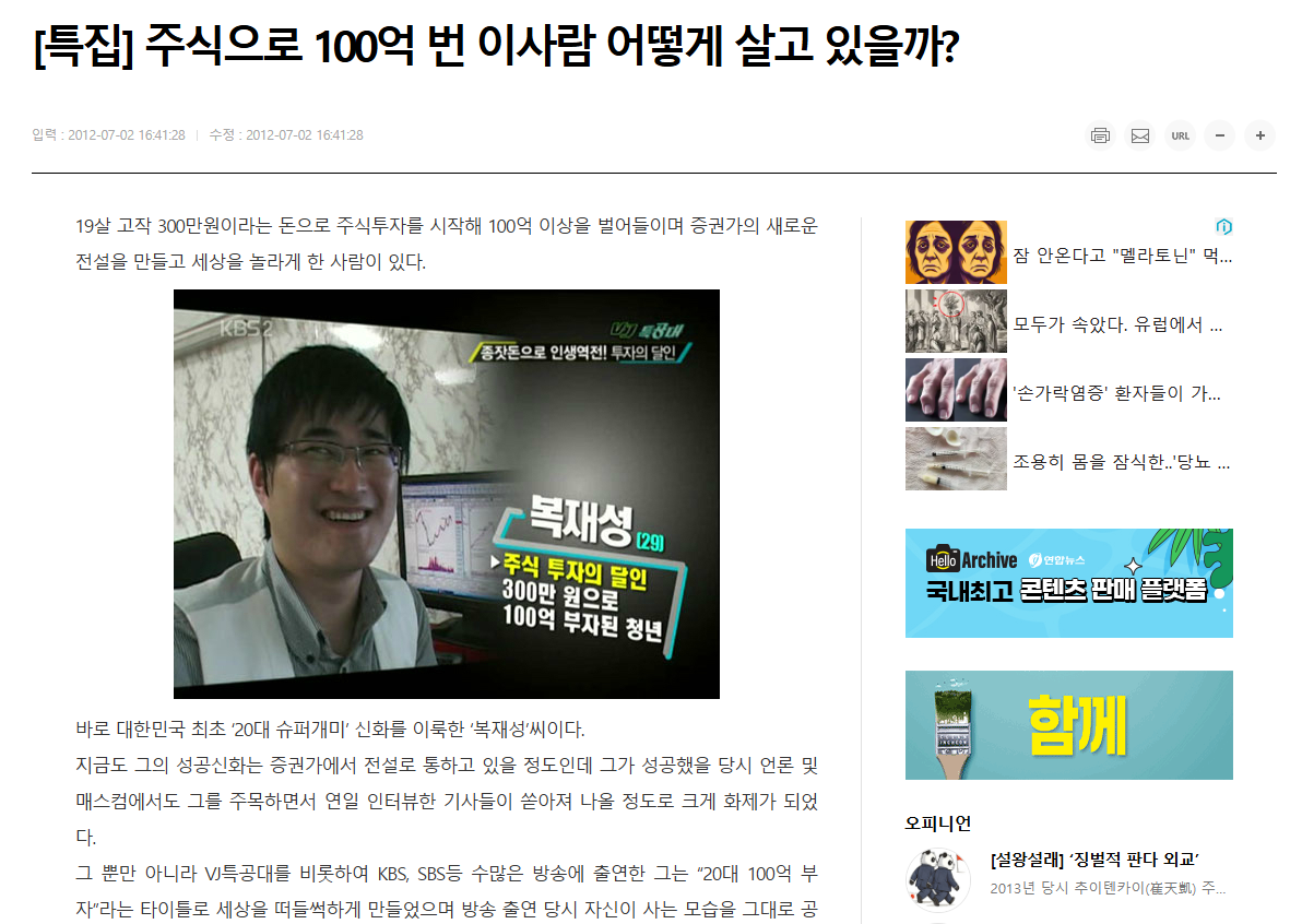 한국 주식시장의 신화로 남은 인물, 주변으로부터 들은 ‘복재성’의 최신 근황 - 월간 인터뷰(IN